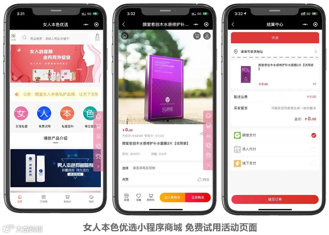 女人本色品牌商选择启博启小铺小程序商城系统,来搭建社交电商业务,用启小铺的“免费试用”功能,低成本获取第一批客户,为招募代理团队汇聚用户基础。