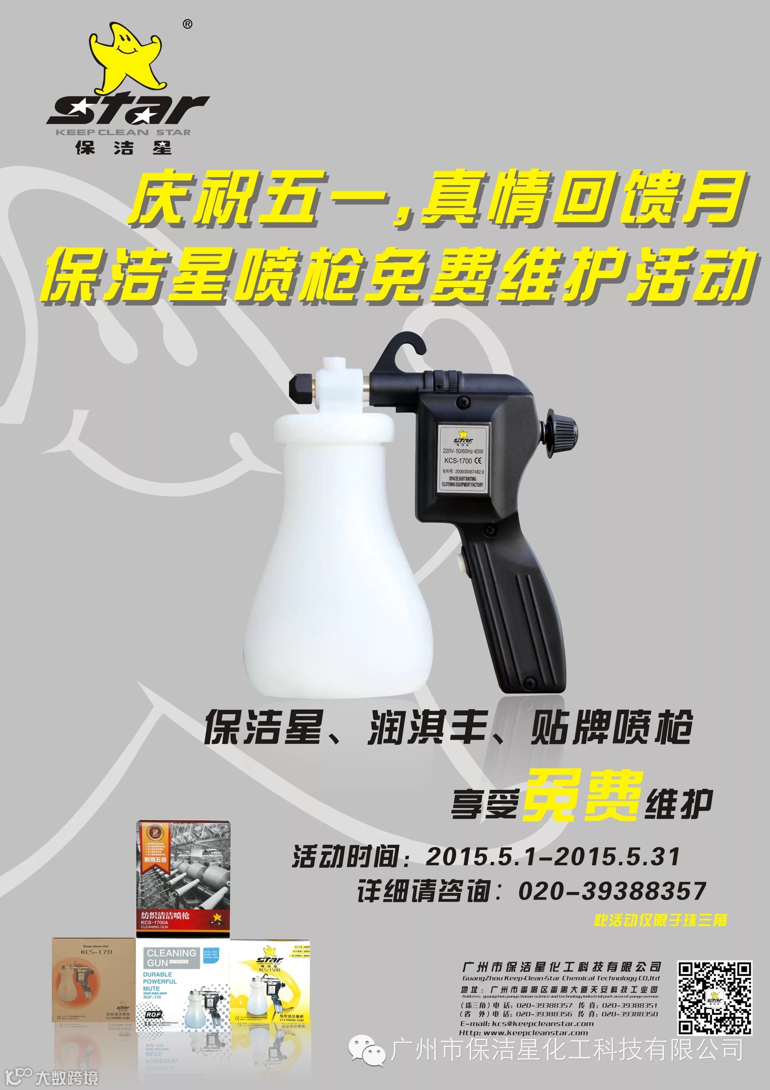 广州保洁星化工科技有限公司回馈客户,5月我司所有品牌喷枪免费维护。保洁星喷枪三免活动:免费保养、免费维修、 免费换零件。