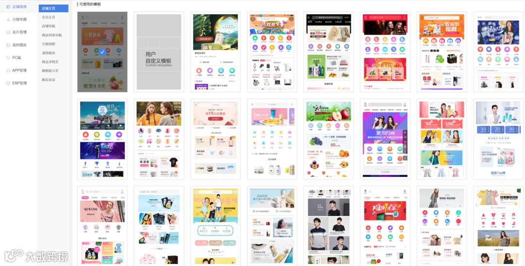 (微分销后台-店铺主页模板栏部分截图)