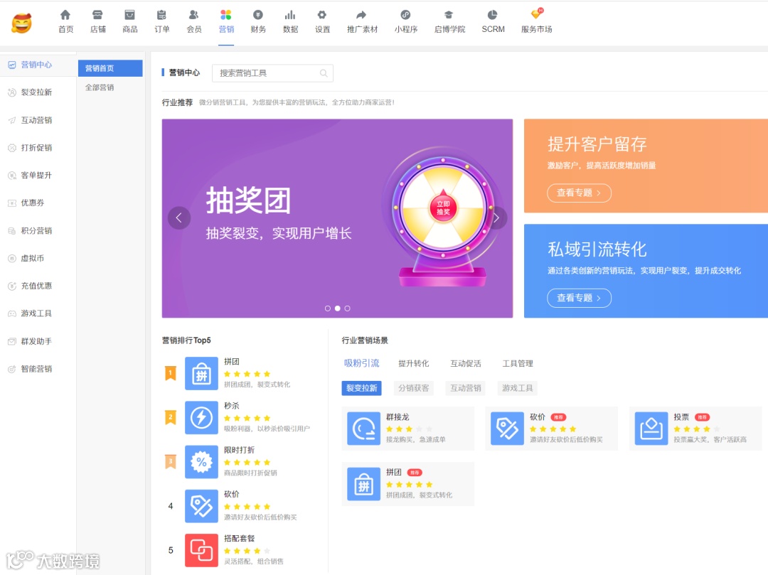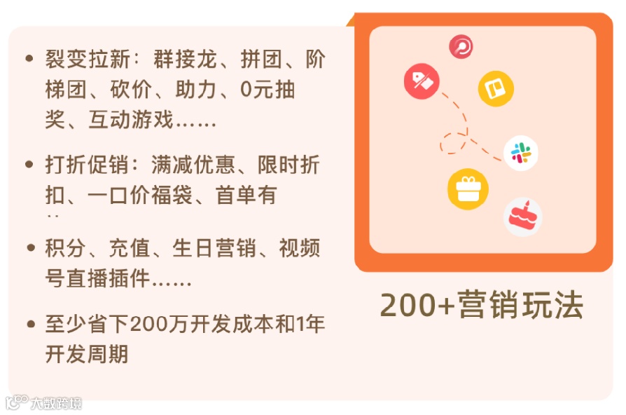 强大丰富的促销手段让客户下单成功;多种会员玩法,提高客户复购率。