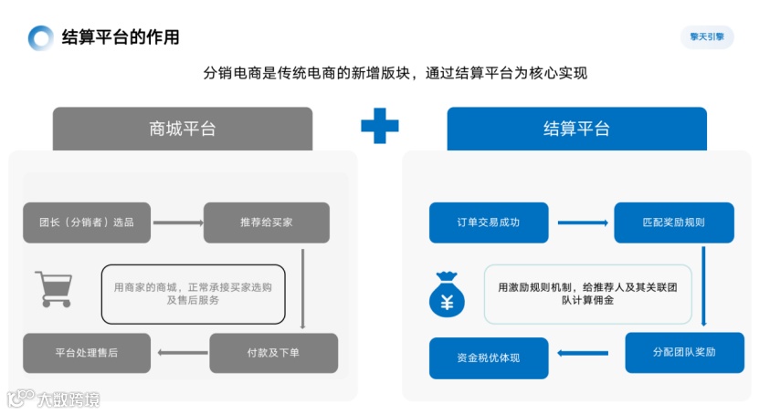 其中,结算平台作为各大电商平台的分销版块中的重要角色,对资金准确性以及模式的灵活性要求极高,需要有专业的团队管理、模式测算、智能数据、资金回溯等核心模块能力。