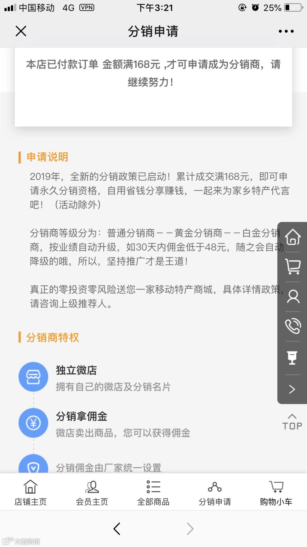 商城邀请在店铺内消费满168元的会员申请成为分销商,分销商可以拥有自己的微商城、分销名片,可以在商品推广成功之后获得一定的佣金。依托分享经济,以佣金作为推动推客分享行为的主要因素,分销商每一份商品的分享推广,商家与分销商互利互惠,同时也助推了平江特产的进一步传播。