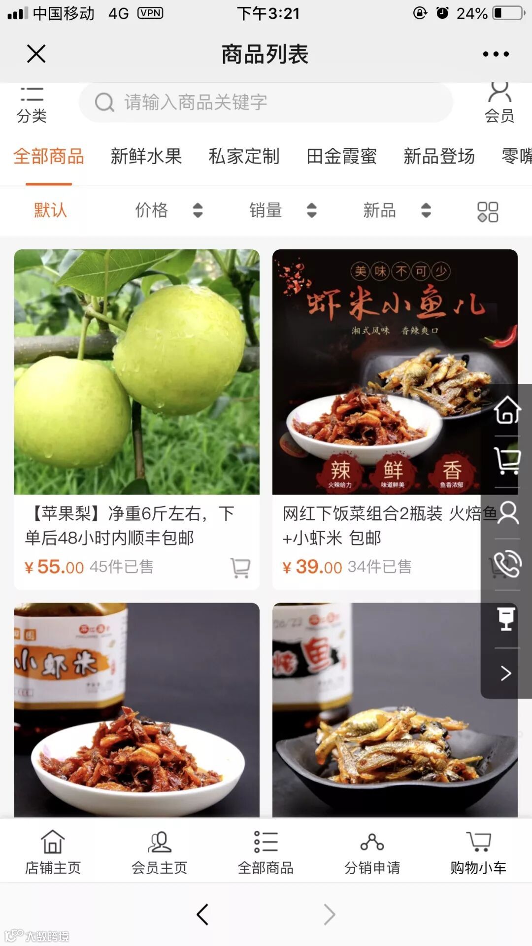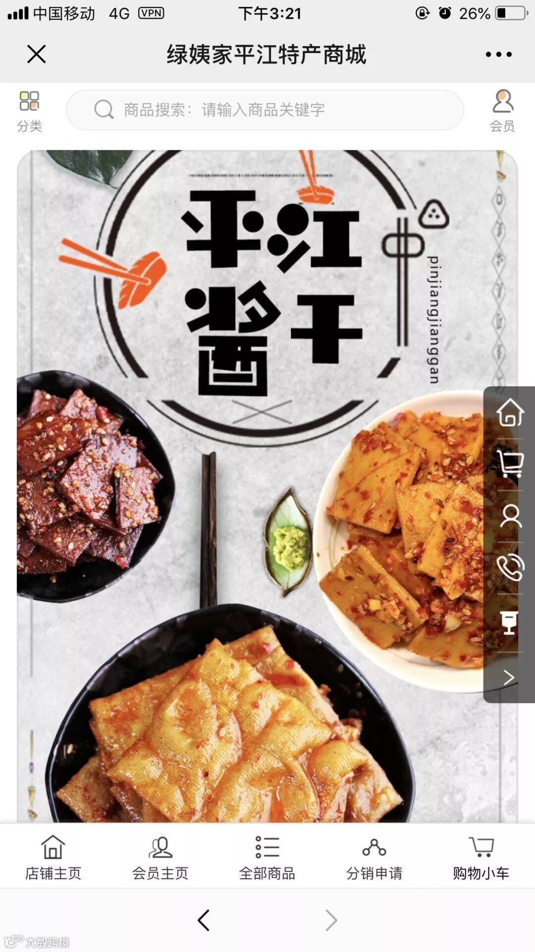 打开绿姨家平江特产微商城可以看到,休闲食品、传统炒货、豆皮蜜饯等产品齐全,包括平江火焙鱼、平江酱干、平江豆腐乳等产品。“到目前已经有151款平江特产在微商城销售。”平江县春纪电子商务有限责任公司负责人介绍说:“借力社交电商,借力启博微商城,已经让我们平江特产已走向全国各地。”