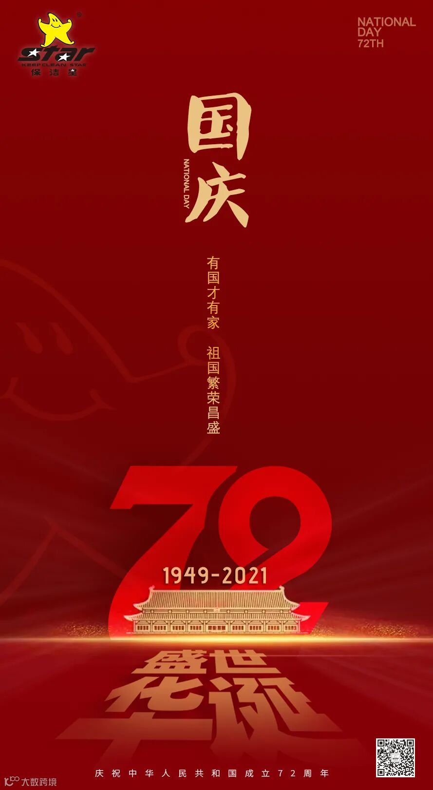 导读:盛世庆华诞,山河谱新章,历经72载峥嵘岁月,铸就中华民族伟大复兴,恰逢盛世,与国同梦。保洁星祝大家国庆节快乐!