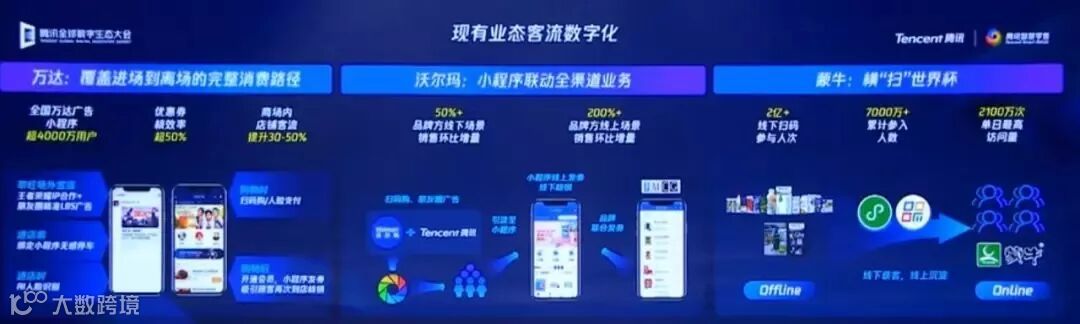 落实到案例方面,万达广场通过与腾讯智慧零售合作,覆盖消费者进场到离场的完整消费路径,目前全国万达广告小程序用户量超4000万,优惠券核销率超50%,商场内店铺客流提升30%-50%;