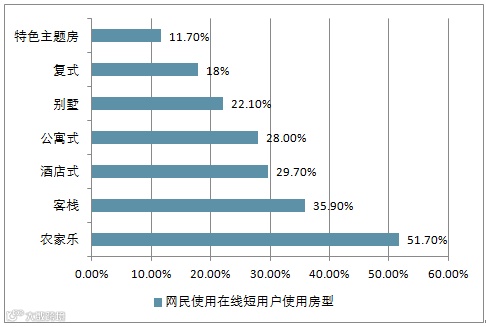 2018上半年各在线短租APP用户房型选择中,51.7%的在线短租用户选择农家乐,其次,35.9%的用户选择客栈。酒店式、公寓式和别墅等房型选择分布较为均衡。