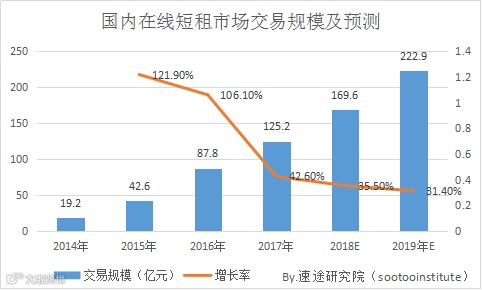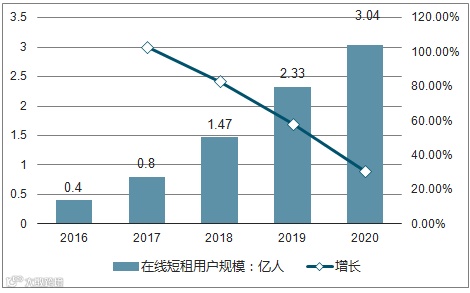 2018年在线短租用户规模及增长走势图可以看到用户一直在迅猛增长。