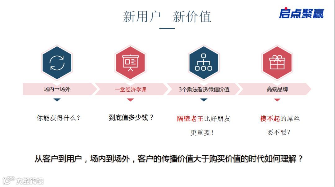 万老师开过的高校里最大的一次演讲是在上海交大徐汇校区大礼堂满座500人听课,回去传播也就是每个人传播4、5个好友,也就是身边2500多个人知道。如果让500个人分享的朋友圈里,2018年腾讯公布平均每个微信号会有199个好友,每个微信号有百分十七的阅读量,也就是说一百个中会有17个人看,500个都分享到朋友圈也就是说会有1.7万多的人观看!