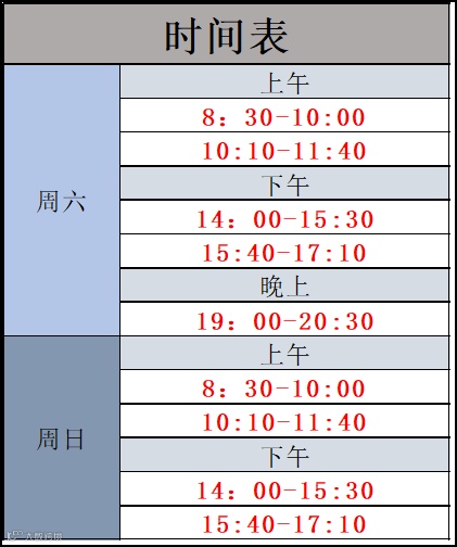 姬堂馆上课时间如下