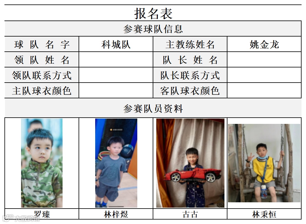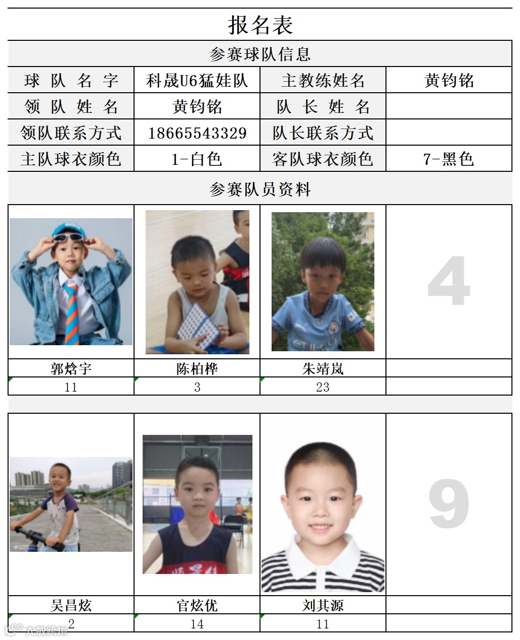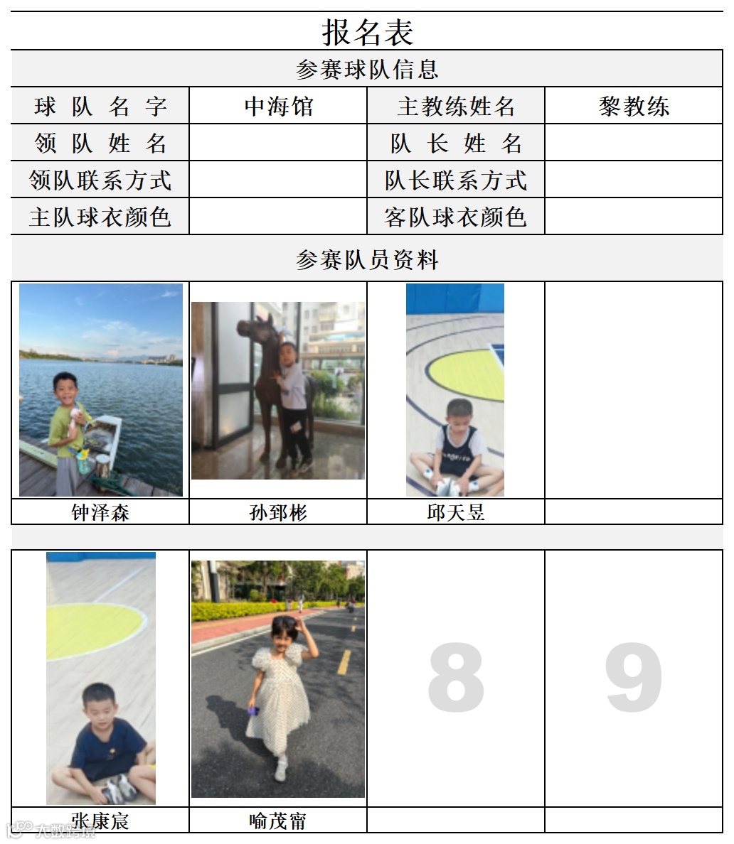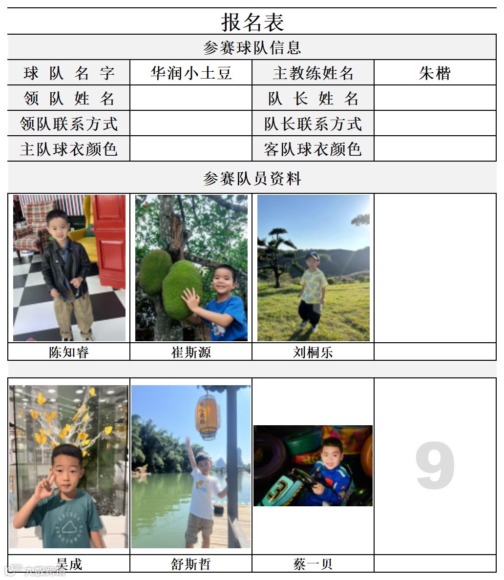 比赛组别:2019年9月1日以后出生(U6组)
