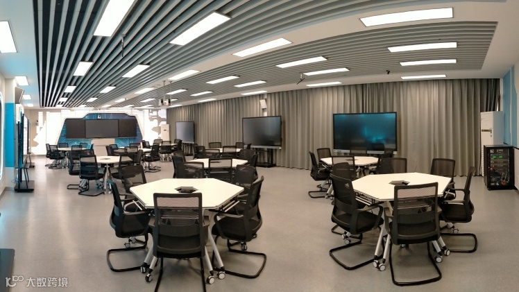 讨室。为教室配有便捷式桌椅、交互智能一体机、智慧课堂系统、智慧录播系统等信息化设备,将信息化技术深度融合教育教学场景。日常可满足课程资源建设、课堂互动教