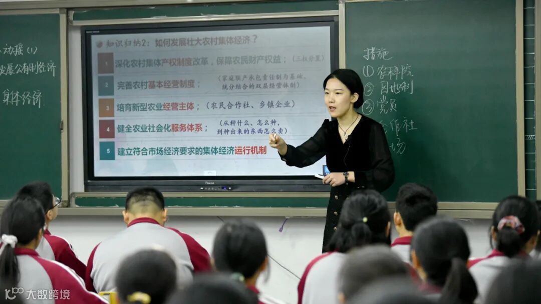 在本次教研中,河南平原外国语学校马焕兰老师的情境创设得到了秦书珩老师的赞赏。马焕兰老师围绕“坚持两个毫不动摇”的教学主题,结合当地盐店庄“荒滩变桃园”的实际案例,让学生加深理解农村土地改革三权分置制度的重要性和公有制经济的优越性,并产生认同。