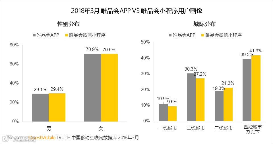 唯品会小程序则覆盖更多三四线城市及以下用户