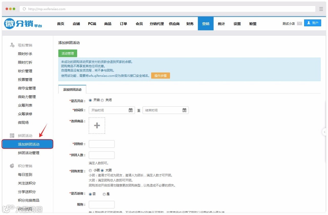 1.可以设置活动结束后拼团是否成功(如果选择是,活动结束的时候拼团人数没达到条件,拼团自动成功)