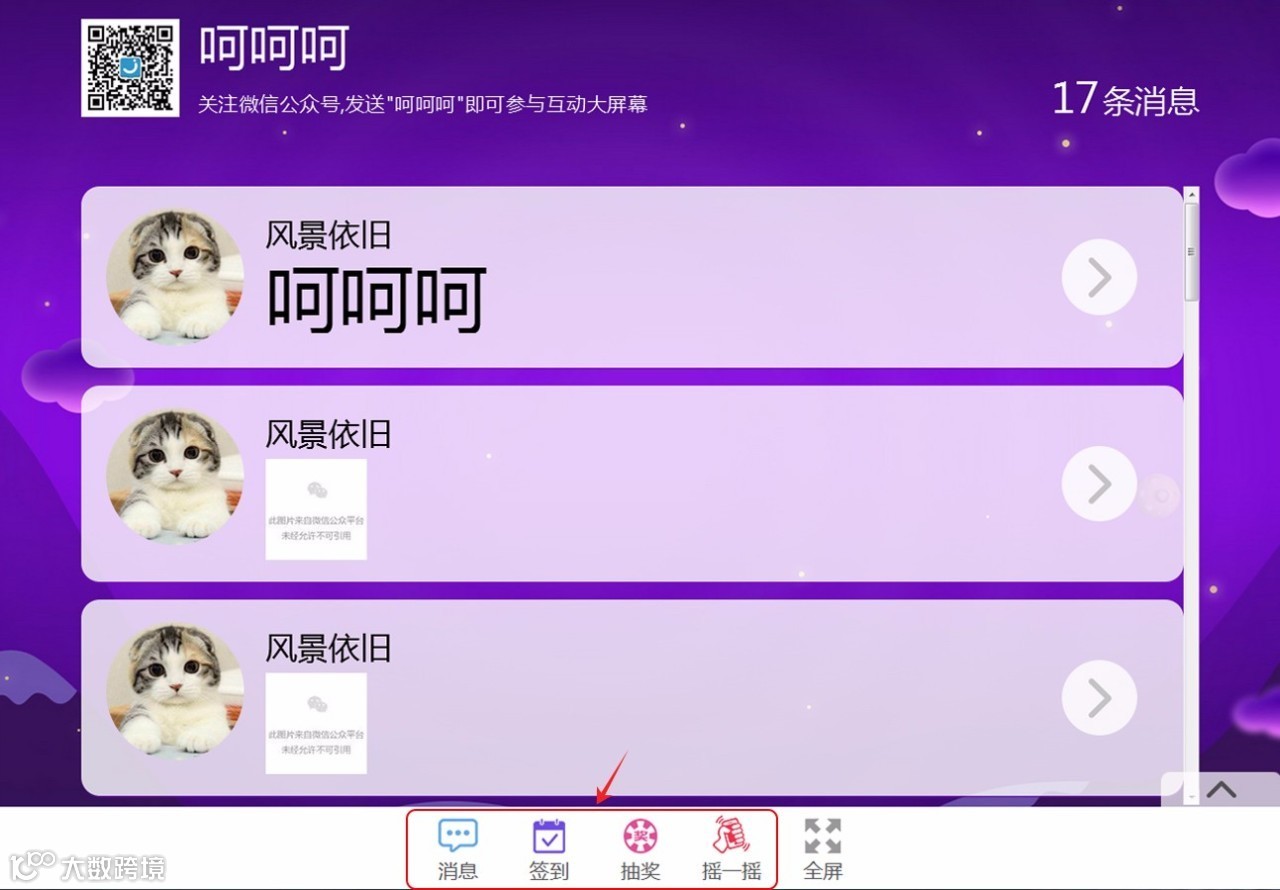 点击大屏幕就可以进入活动详情中,可以看到每个人的签到和开奖情况和开奖。