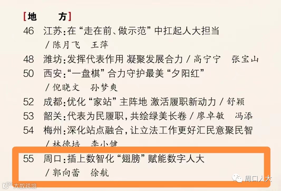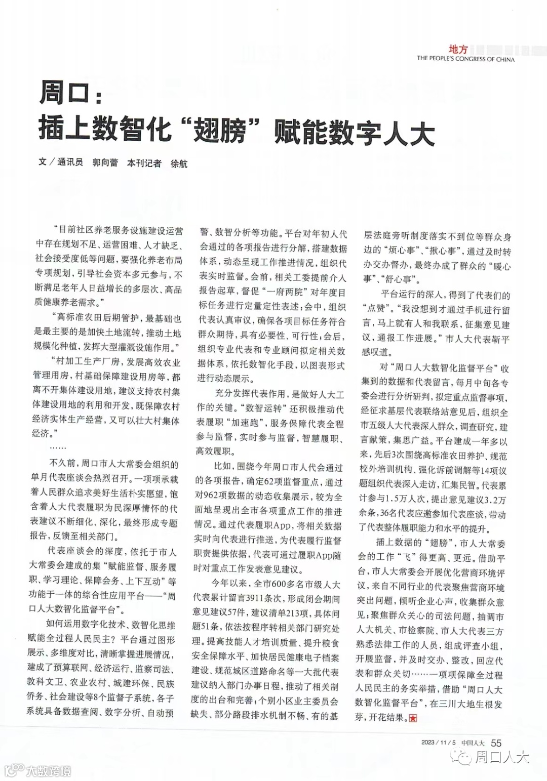 *11月5日出版的《中国人大》杂志2023年第21期,刊发了《周口:插上数智化“翅膀”赋能数字人大》。