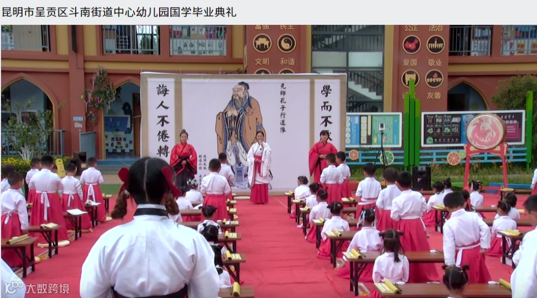 昆明市斗南街道中心幼儿园举办的国学毕业典礼,用传统“开笔礼”带领孩子们感知传统文化,体验国学魅力,提升文化自信,为加深文化烙印、根植传统底蕴埋下健康的种子。活动直播记录下孩童一幕幕的真挚、可爱,为他们人生的第一场毕业典礼留下珍贵影像。