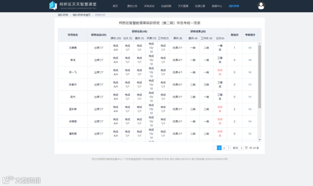 柯桥区智慧教育高级研修班第二期学员考核结果