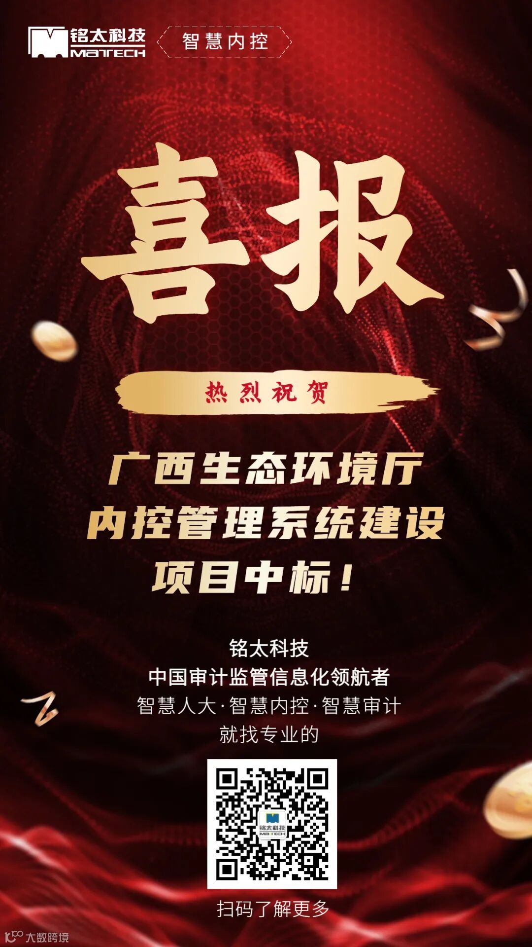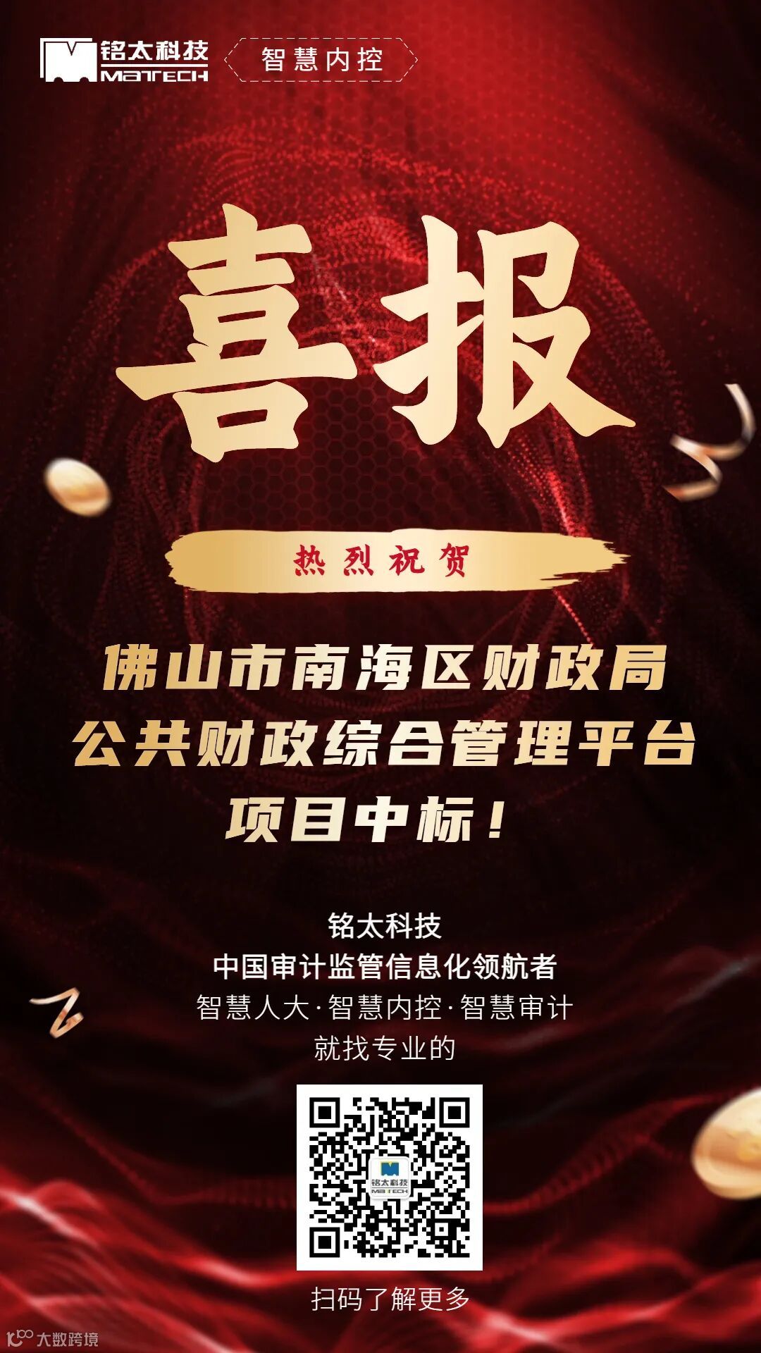 广东铭太信息科技有限公司(简称“铭太科技”)成立于2006年,总部位于广东广州,深耕审计监管信息化领域15年,是一家具有深厚业务积淀的企业,参与了国家审计署金审工程三期的顶层设计、中国注册会计师协会行业信息化标准文件制定、人大预算联网监督系统地方行业标准制订。拥有多项发明专利,CMMI5级认证、ITSS信息技术服务标准,百余项软件著作权,近40个高新技术认证产品。
