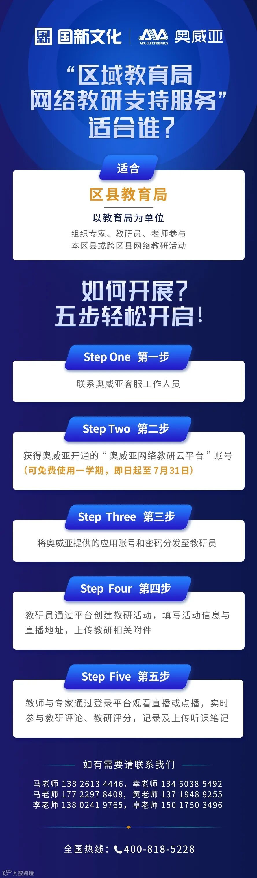 2020年,奥威亚在服务柯桥共同体常态化网络教研的基础上,全面推出更易用的网络教研云平台。面对新学期教研难题,奥威亚践行央企担当,持续免费提供“区域教育局网络教研支持服务”(网络教研云平台可供免费使用1学期,即日起至7月31日),助力全国各地教育系统充分发挥名师名课示范效应,探索网络环境下教研活动的新形态,以优秀教师带动普通教师水平提升,使名师资源得到更大范围共享,促进教师专业发展。