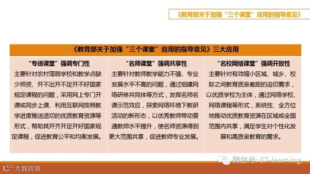 各个区域在进行相关建设规划时候从应用,技术等各个角度创造了各种名词模式,其实本质还是三大课堂的应用模式,只要理解三大课堂应用模式然后根据区域情况灵活运用即可。三大课堂指导意见已经给出说明,通俗概况就是如下情况: