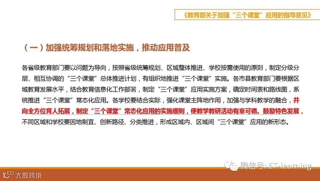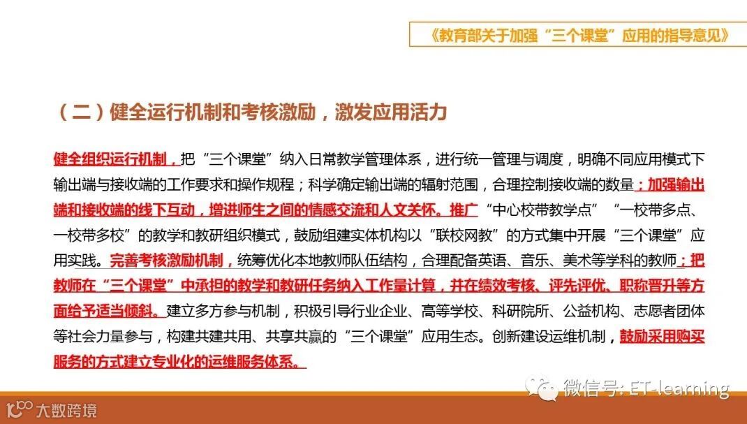 2019年众多省份发布本省的2.0行动计划指南,其中重点是围绕解决教育均衡问题的互动课堂建设,其他省份也围绕互动课堂发布了相关专门文件。从众多文件可以大致看出各省建设的心态:想要建设,又想推陈出新,却又慢慢探索前进。日前,教育部印发《教育部关于加强“三个课堂”应用的指导意见》就很好的解决了这些问题,今天就为各位做一个关键点梳理。
