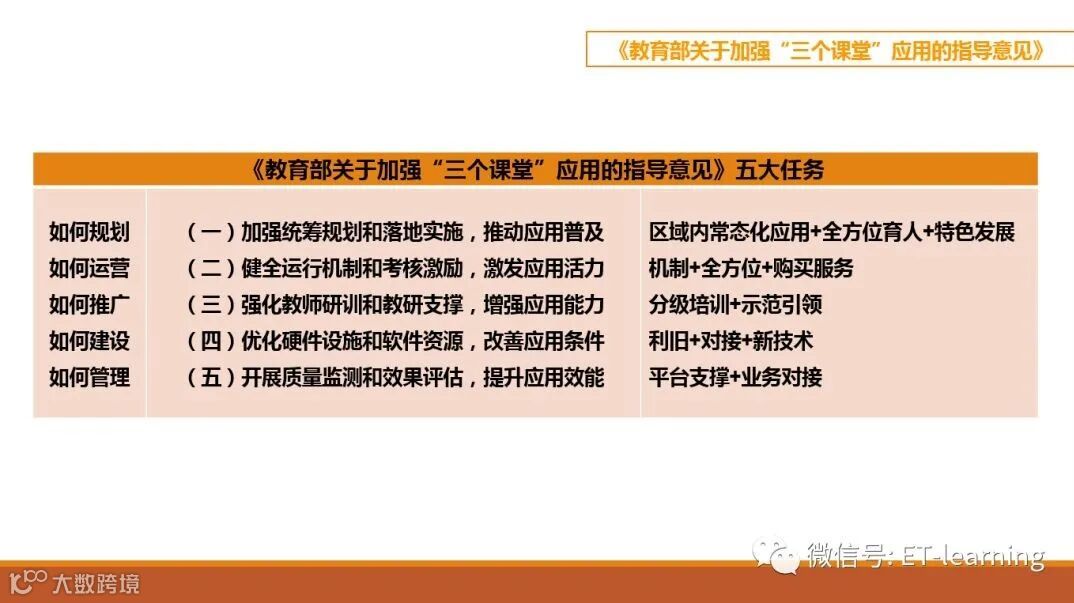 指导意见列出的五大任务实际是在手把手的教给各个区域如何完成三大课堂的建设,回答了常见的五个问题:
