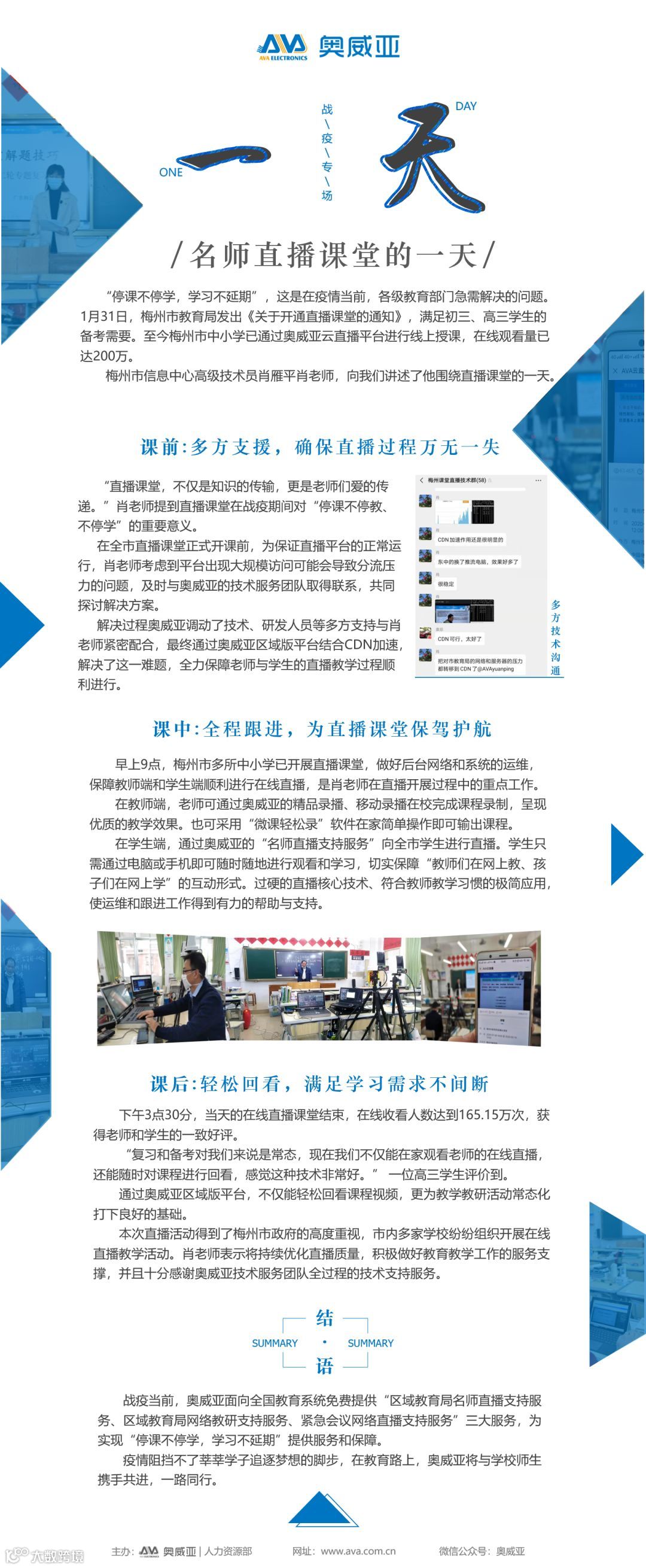 导读:梅州市中小学通过奥威亚直播云平台进行线上授课,在线观看量已达200万以上。这是直播课堂开展的一天。