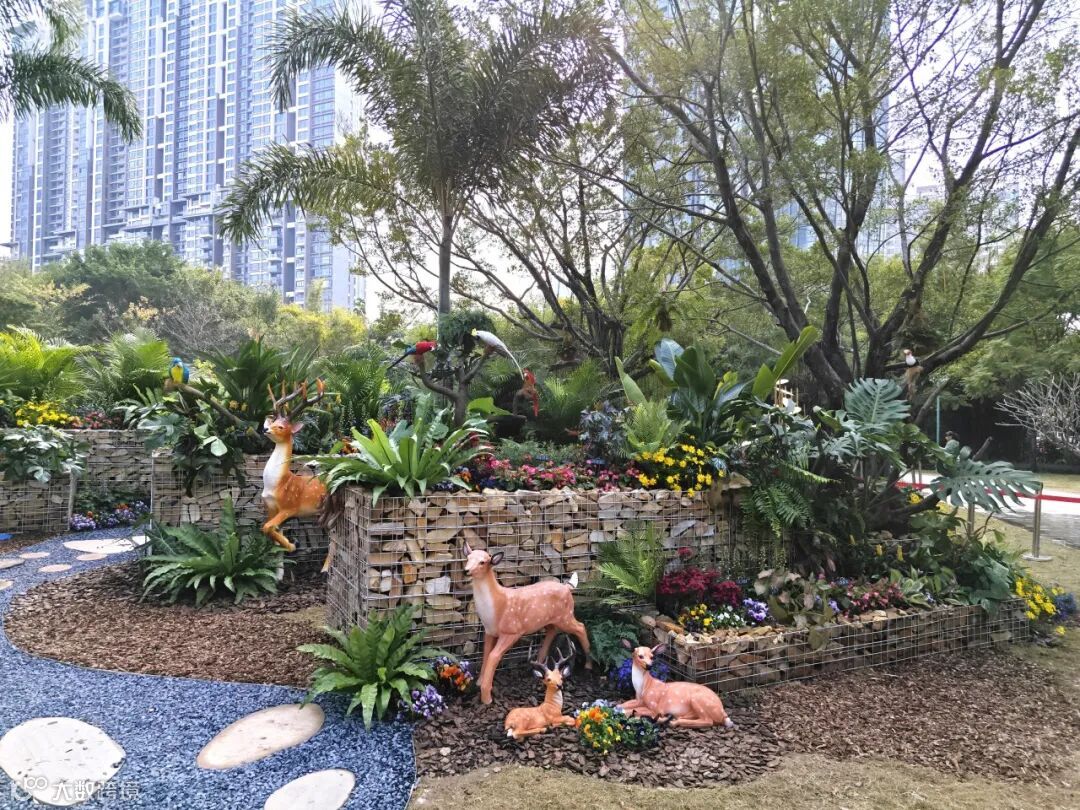 该作品由名卉公司下属嘉卉公司设计施工。以植物岛屿为花园脉络,搭配石笼花槽与雨林植物的植物类群,共同模拟自然林间地形及生境,为动物们提供环境类丰容体验,给花园带来自然感和层次感;可爱的小鹿穿行于林间,鹦鹉等鸟类落在枝头,构成一幅和谐自然的生态画卷。