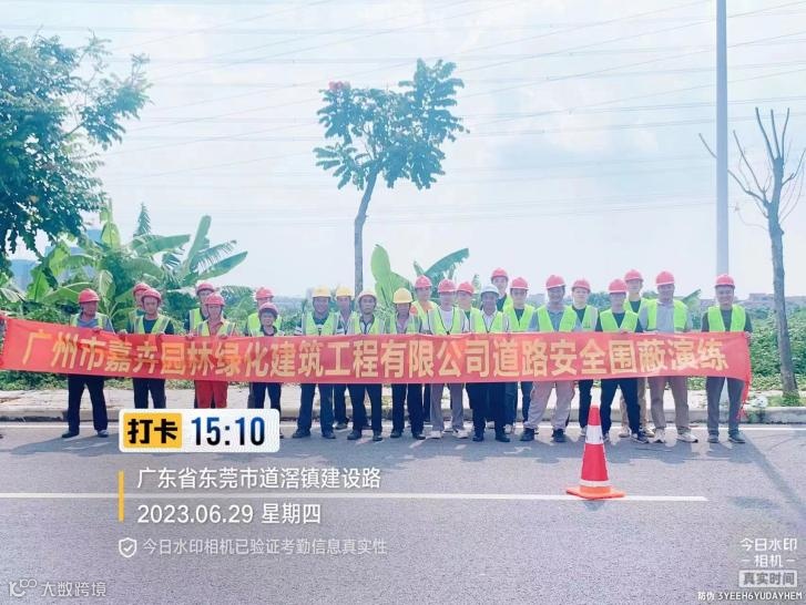 为进一步强化及保障道路安全围蔽措施的落实,强化公司全员安全生产教育,提高突发事件防控能力和处置能力,同时结合“安全生产月”、“人人讲安全,个个会应急”系列活动要求,嘉卉公司于6月29日下午组织员工开展道路安全围蔽演练活动。