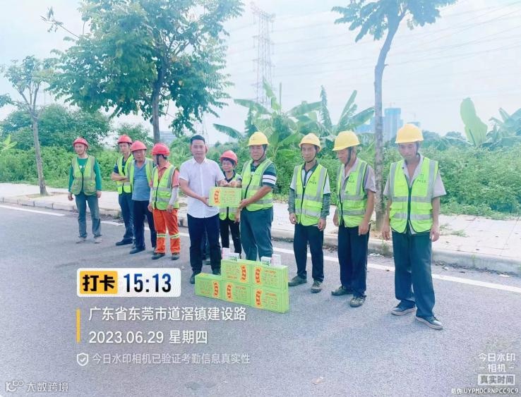 演练活动结束,何利景副总经理代表公司领导班子,为东莞项目部员工送上清凉解暑饮品,向奋战在高温一线坚守岗位的员工们表达了殷切的问候和浓浓的关怀。