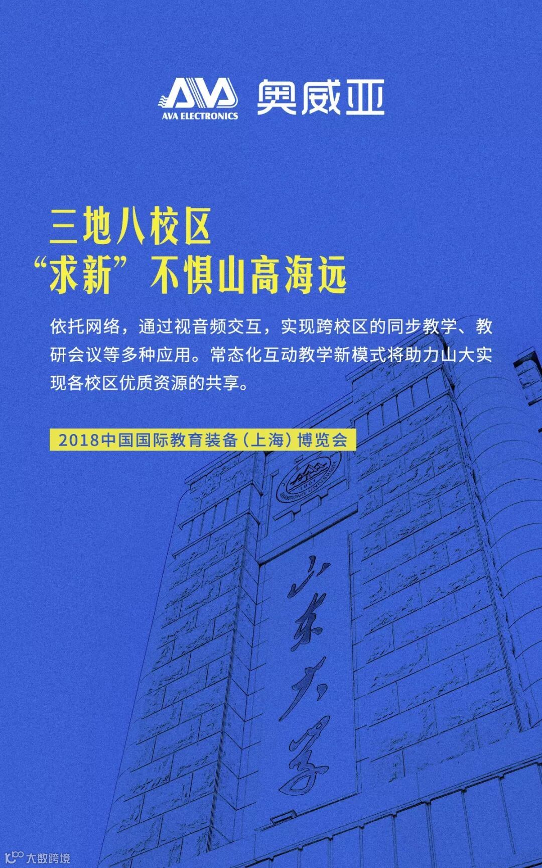 为了探索出一条适合异地多校区资源共享的特色之路,丰富各个学院教学模式,山东大学坚持“求新”,与奥威亚联手,构建了一个新型智能的互动教学空间。依托网络,通过视音频交互,实现跨校区的同步教学、教研会议等多种应用。常态化互动教学新模式将助力山大实现各校区优质资源的共享,三地八校区,求新不惧山高海远。