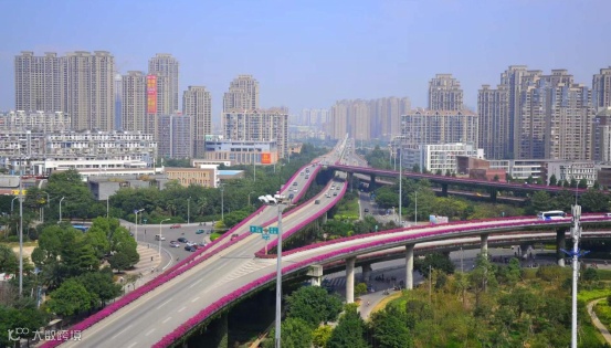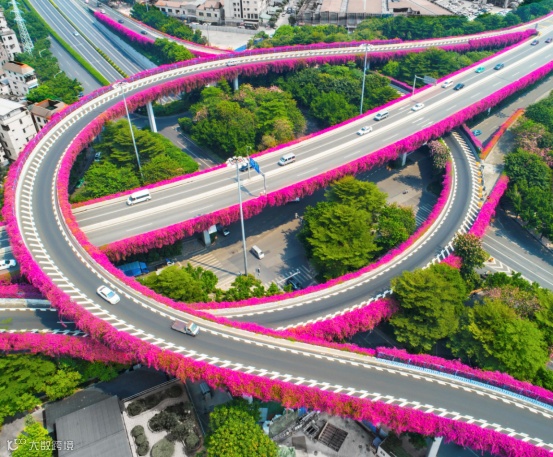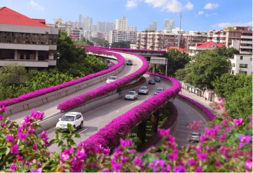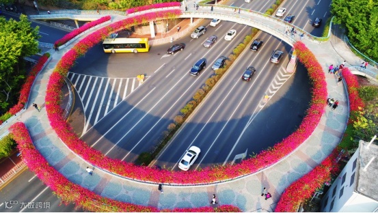 天桥道路绚丽缤纷,花卉景观赏心悦目