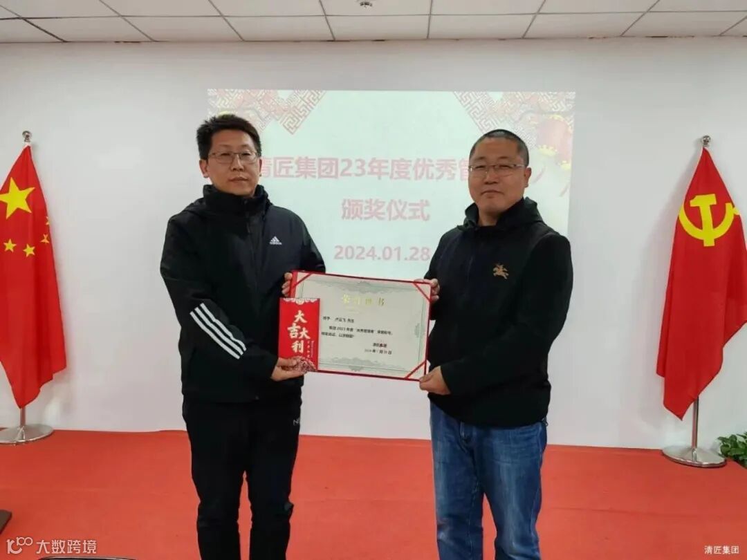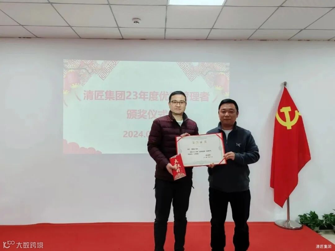 会上,集团董事长李总、总裁江总分别对评选出来的两名优秀管理者:高木电子总经理卢总、清匠电器总经理郭总进行表彰颁发荣誉证书和奖金,肯定他们2023年度在公司业务发展、创新能力、管理能力、盈利创收、下属培养等方面的优异成绩;勉励与会高管领导们牢记使命在新一年度的工作中带领全体员工齐心协力、携手并进,共同开启新的征程、再创新的辉煌!