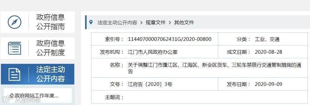 导读:各位司机请注意!10月1日起,江门市区也要限货通行了!
