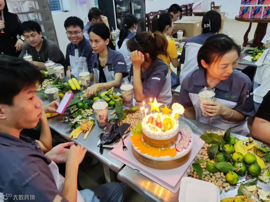 生日,是每个人的成长印记。为了让寿星们感受到公司大家庭的关心爱护,也为了感恩员工的一路同行相伴。行政部提前布置了仪式感满满的生日会现场,美味可口的生日蛋糕、饮料和水果,当然少不了精美的生日礼物。这一切都为了让大家在分享美味的同时感受到生日的快乐、体验到成长的幸福。