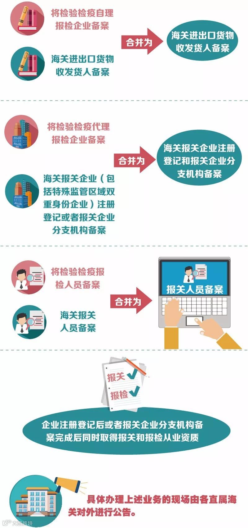 为贯彻落实《深化党和国家机构改革方案》工作部署,海关总署对企业报关报检资质进行了优化整合,现将有关事项进行公告,本公告自2018年4月20日起施行。