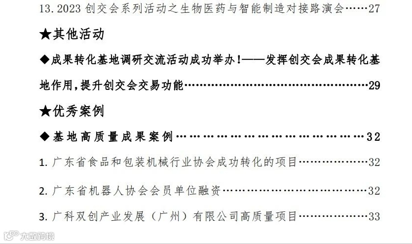 在最新发布的6月份“创交会成果转化基地月度工作动态”报告中,刊录了广科双创策划发起的“全国县域文化科技产业湾创中心”项目和“广东省科学院(琶洲)科普小镇”项目 ,以及广科双创黄埔园区孵化培育的铝燃料能源项目等三个高质量成果优秀案例,对于广科双创创新成果培育与发展,起到了很好的宣传推广作用,也是对广科双创成果转化工作的肯定与支持。未来,广科双创将更好地依托创交会平台对接合作资源,拓展合作渠道,培育更多优质项目。
