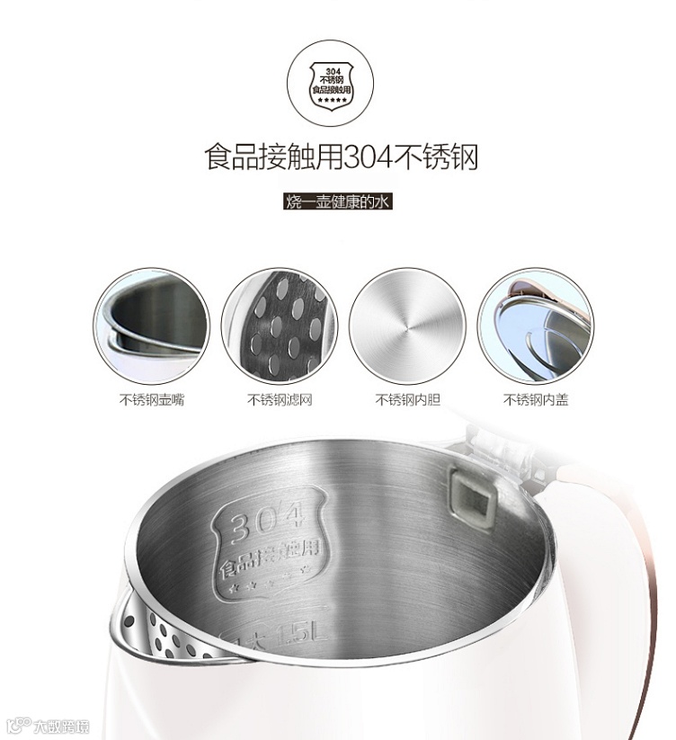 • 外观简洁,双层防烫,1.5L超大容量 •