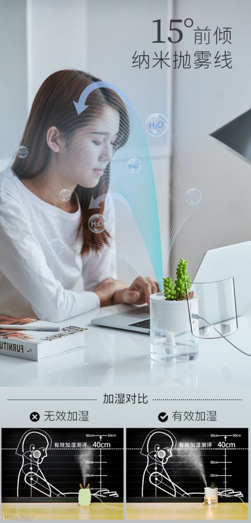 • 15°前倾,纳米抛雾线,柔和加湿 •