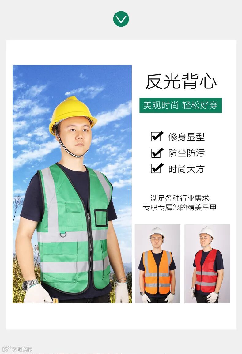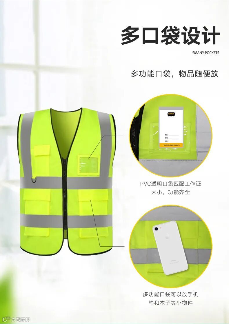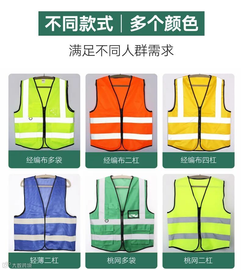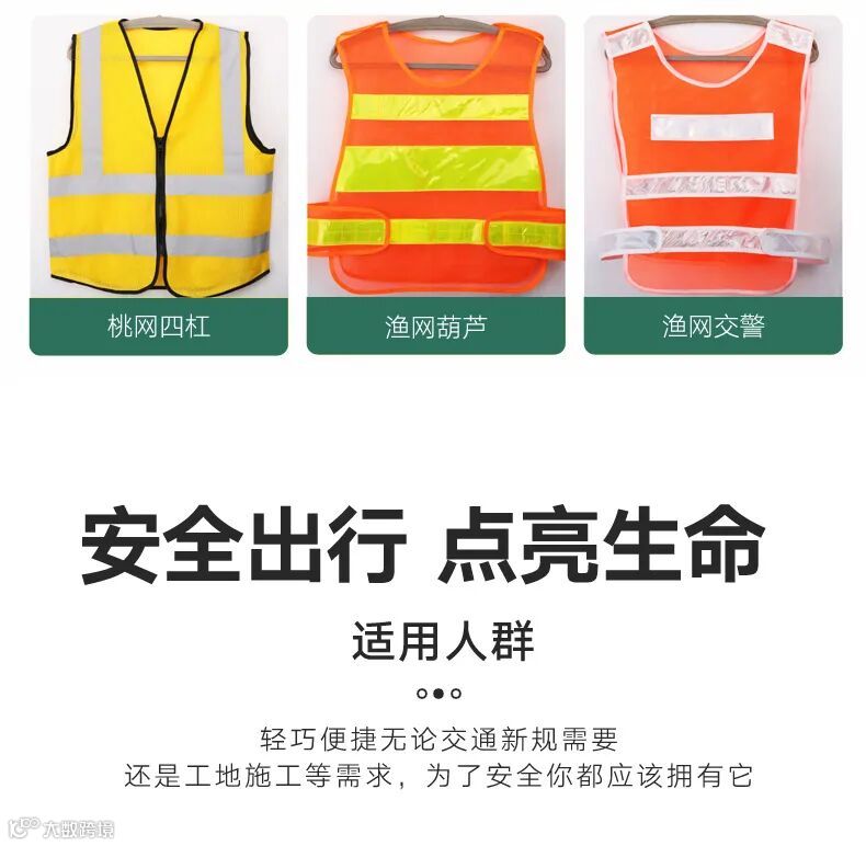 反光背心主体由网眼布或平纹布制成,反光材料是反光晶格或高亮度反光布。