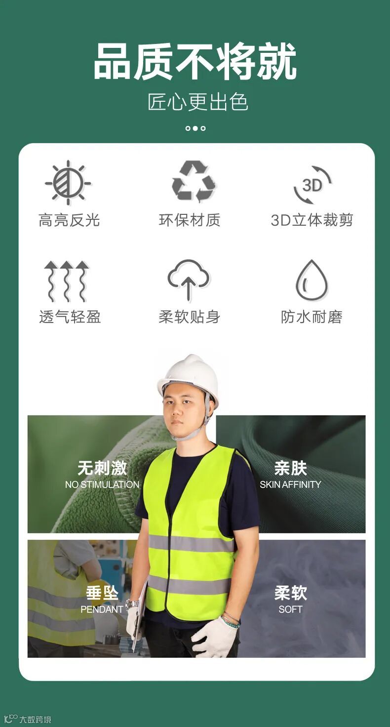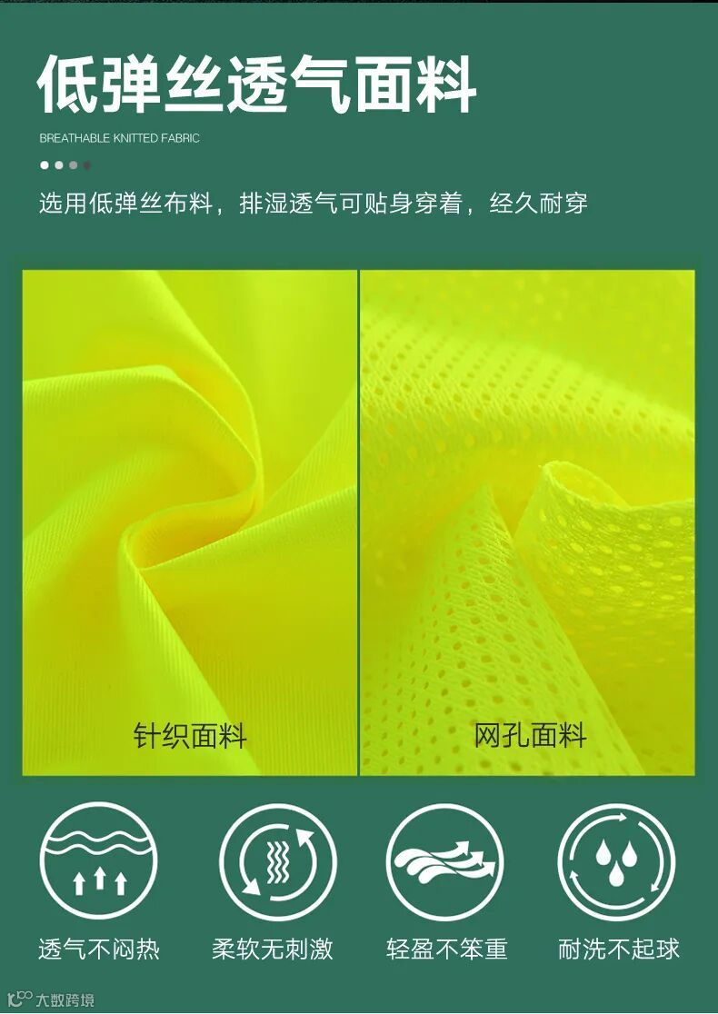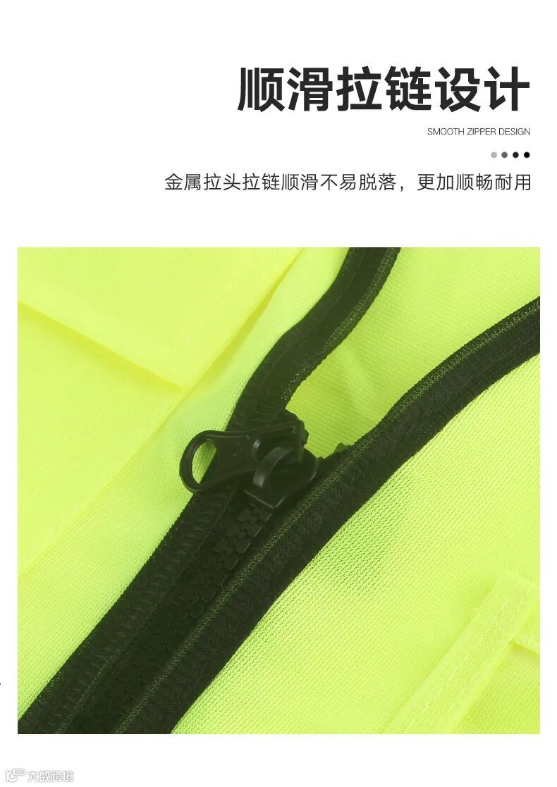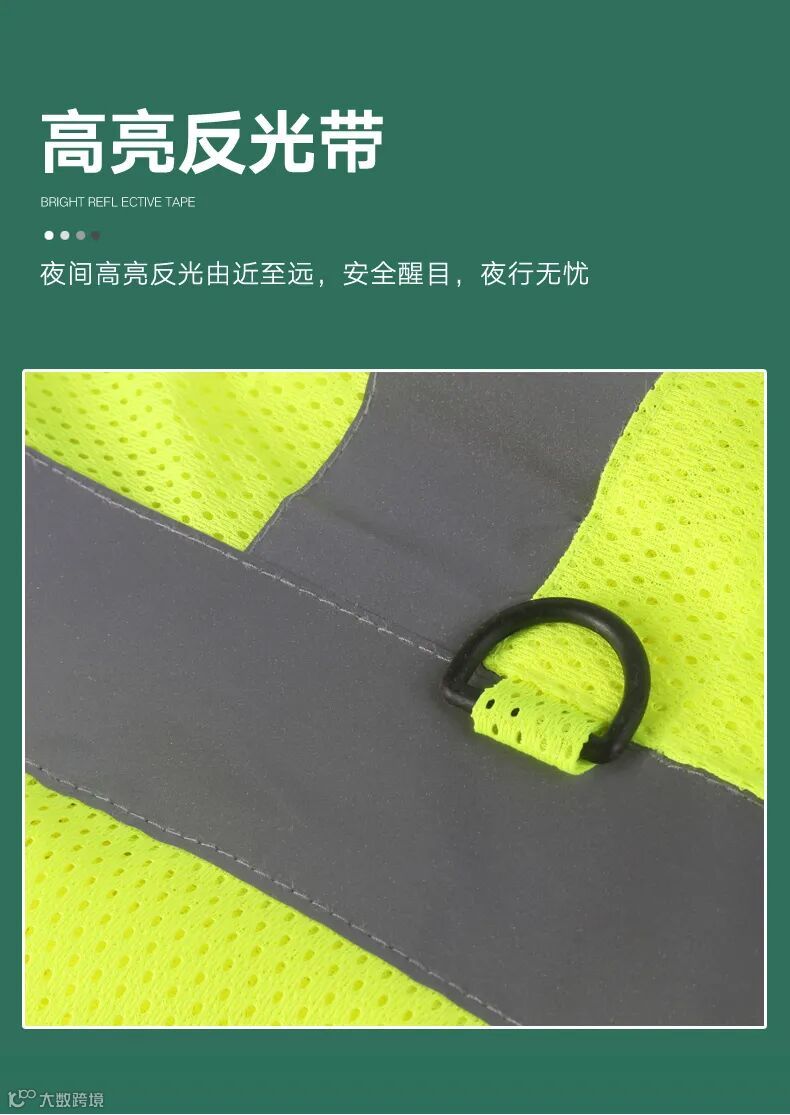 反光背心主体由网眼布或平纹布制成,反光材料是反光晶格或高亮度反光布。