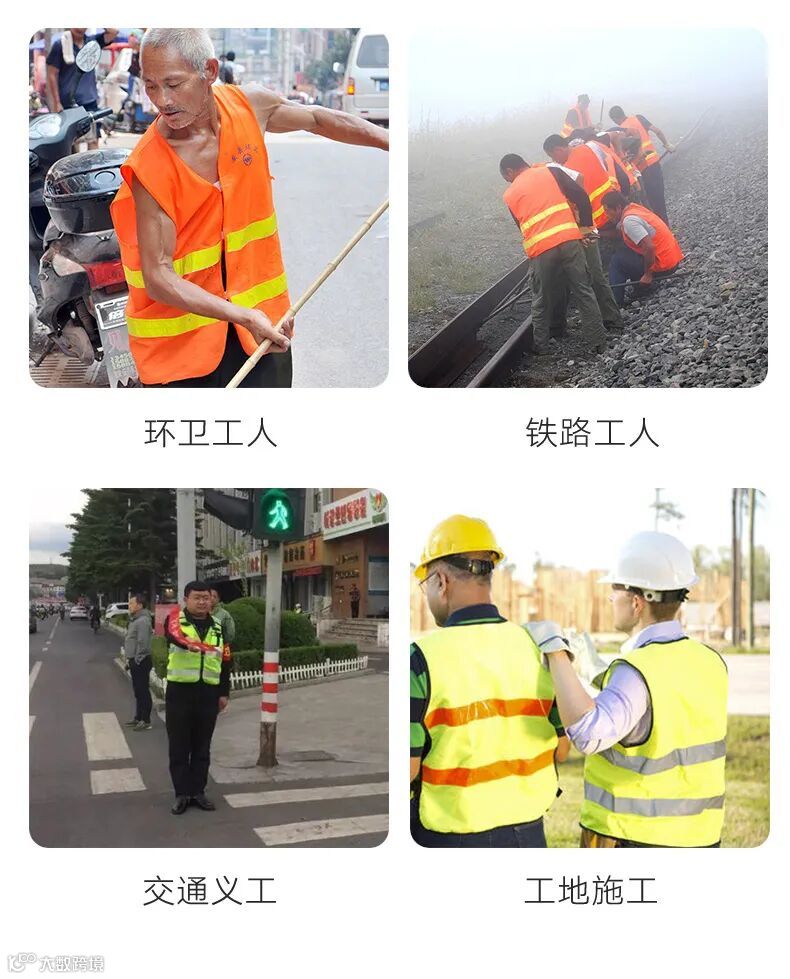 反光背心主要适用于警察、路政人员、交通指挥者、公路养护人员、摩托和自行车驾驶者、暗光下工作者等。