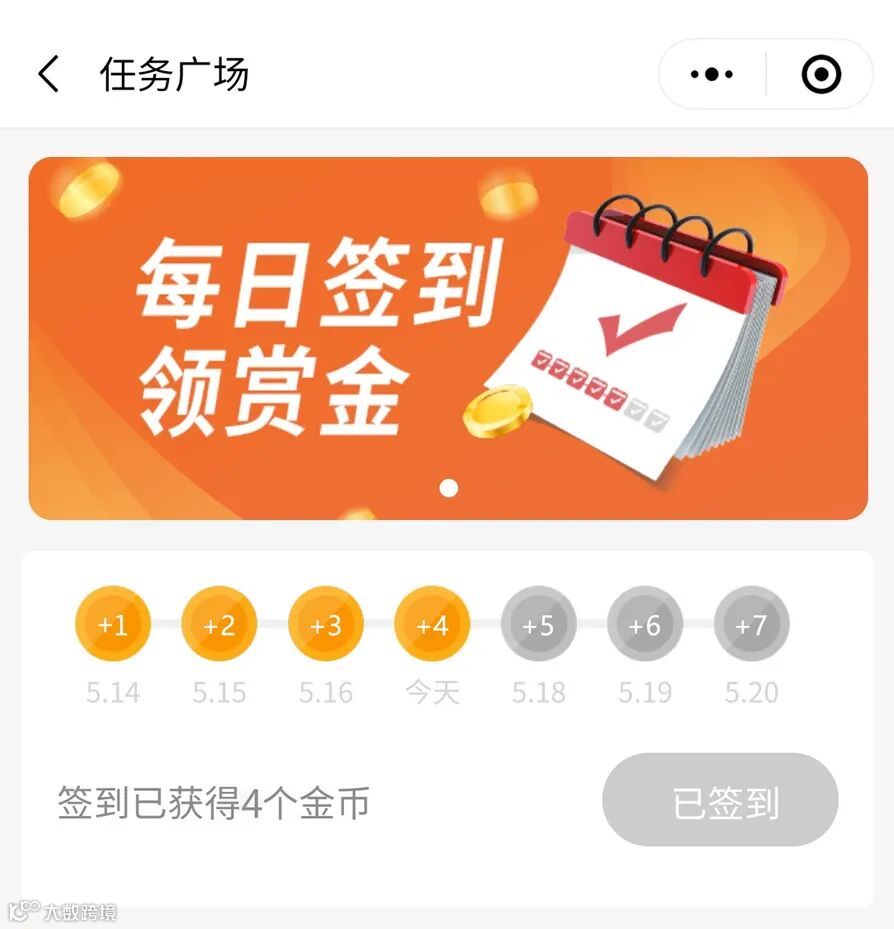 每日登录小程序签到即可获得相应的金币,连续签到天数越多,获取金币的数量越多,如中途断签则重新开始计算。