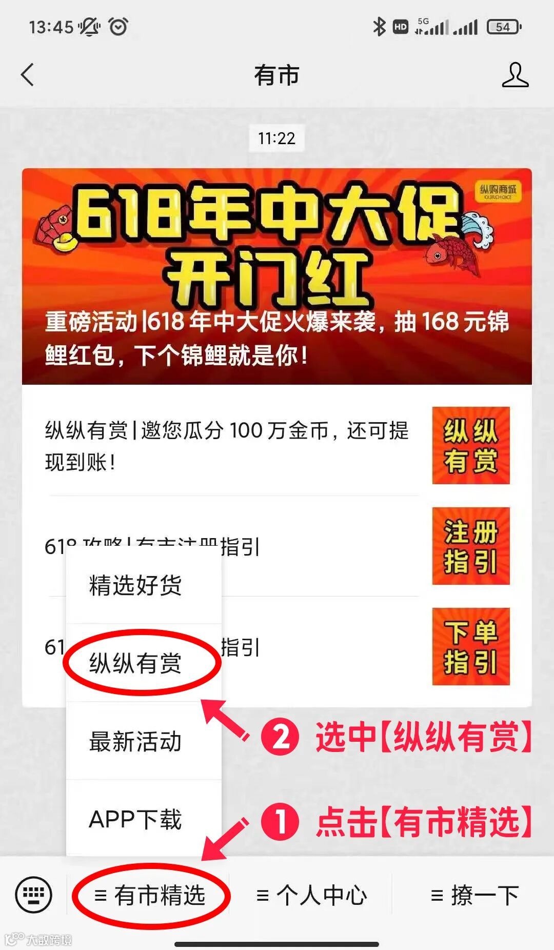 首先,在公众号下方菜单栏中点击【有市精选】-【纵纵有赏】。
