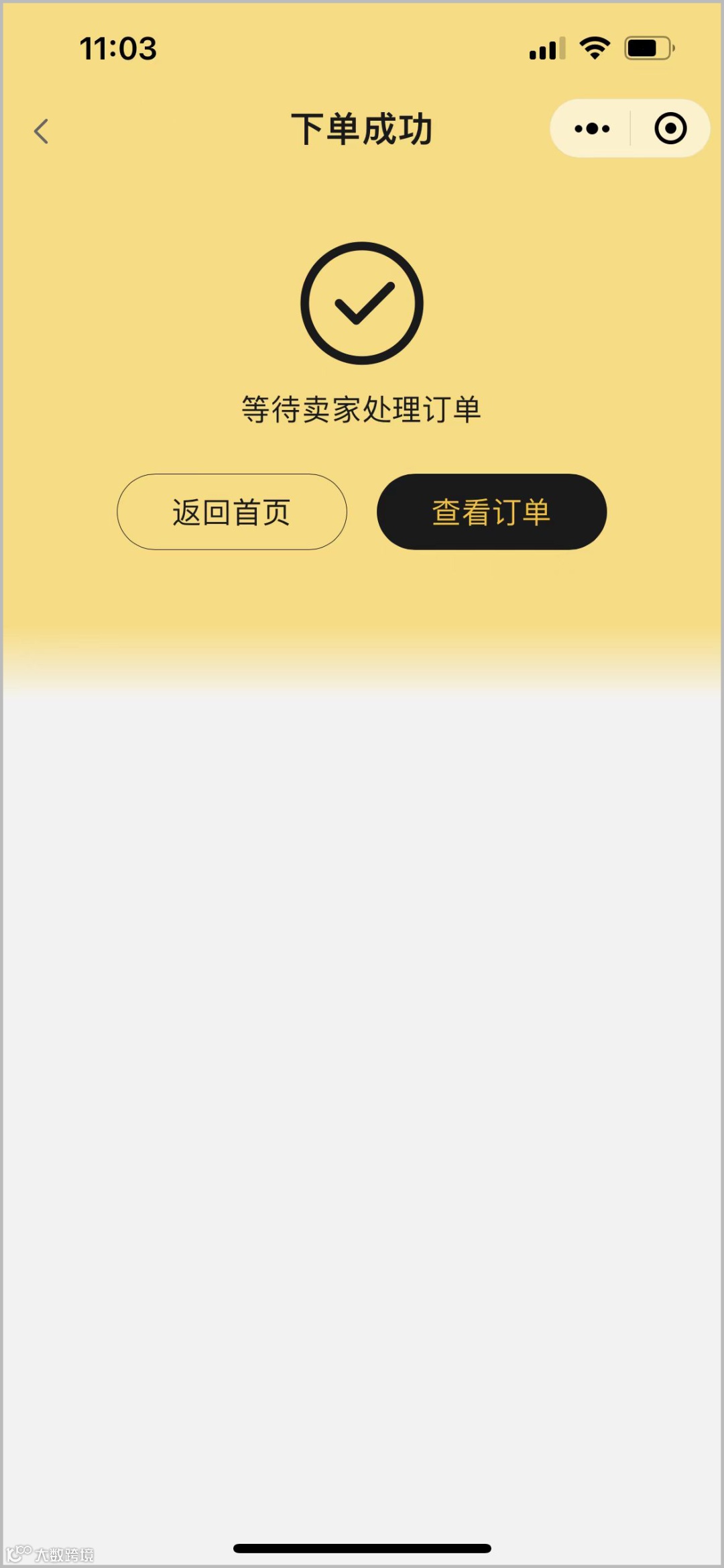 7.显示下单成功,说明订单已提交至商家,等待货到即可。