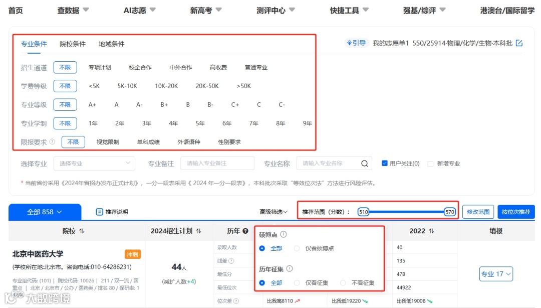 硕博点、征集志愿、分数推荐范围一键精准筛选!