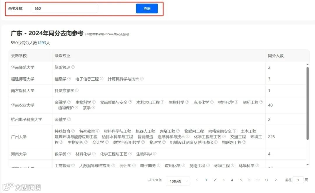 同分去向:参考往年同位次考生录取案例!