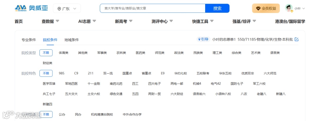 【网页端用户】:登录奥威亚官网(https://www.ava.com.cn),进入“高考志愿服务”功能模块,注册账号,一键生成专属志愿方案!