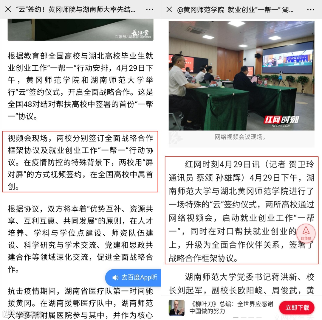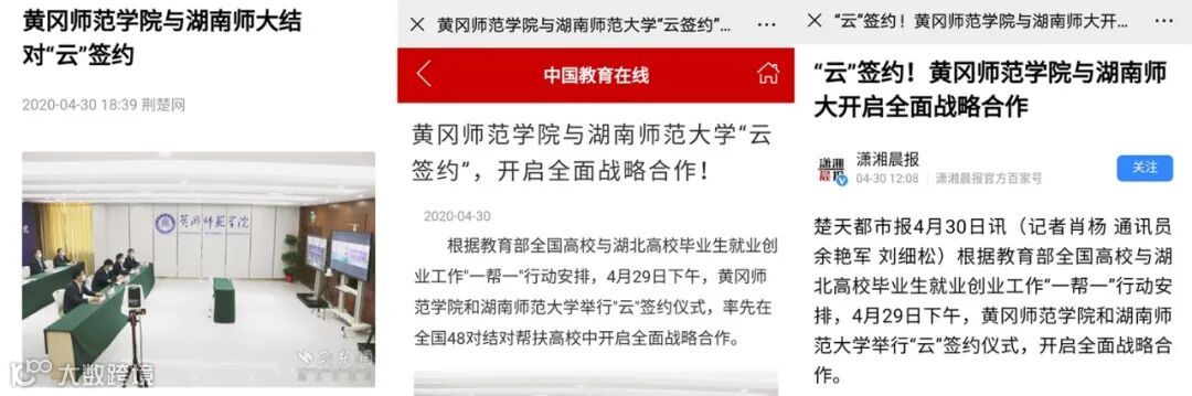 图为荆楚网、潇湘晨报、中国教育在线报道“云”签约